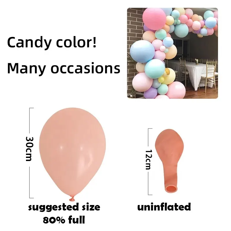 Volledige kleuren: door gebruik te maken van geavanceerde kleurmengtechnologie, herstelt u nauwkeurig de exclusieve macaronkleuren - perzikroze, mintgroen, crèmegeel, hemelsblauw en tientallen andere zachte en dromerige kleuren, de kleur is zeer consistent tussen batches, wat een betrouwbare garantie biedt voor uw latex ballonnen.
