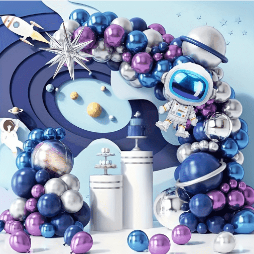 Astronaut folieballonslingerset is het opvallende wapen voor grootschalige activiteiten, geschikt voor feestachtergrondmuur, entree-indeling voor winkelcentrumactiviteiten. Met de ballonketting als basis worden de astronautenprintballon, raketfolieballon, gekleurde planeetballon en matte latexballon afgewisseld en gefixeerd. Het kranspak kan direct aan de muur of het deurkozijn worden gehangen. Het diepe kleurensysteem van de sterrenhemel wordt gecombineerd met heldere metaalglans, die onmiddellijk de meeslepende sfeer van de ruimte vult en de visuele focus van de activiteitenlocatie wordt.