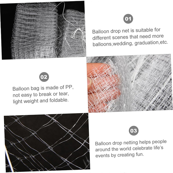 Ballon-dropnetis een flexibele mesh-structuur die b vasthoudtalloons in place en combineert ermee om een verbluffende lay-out te creëren. Of u nu een groot decoratief ballonnet wilt versieren voor een evenement in een winkelcentrum of een hartvormig ballonnet wilt maken voor een romantische bruiloft, NiuN® kan allemaal aan uw behoeften voldoen.