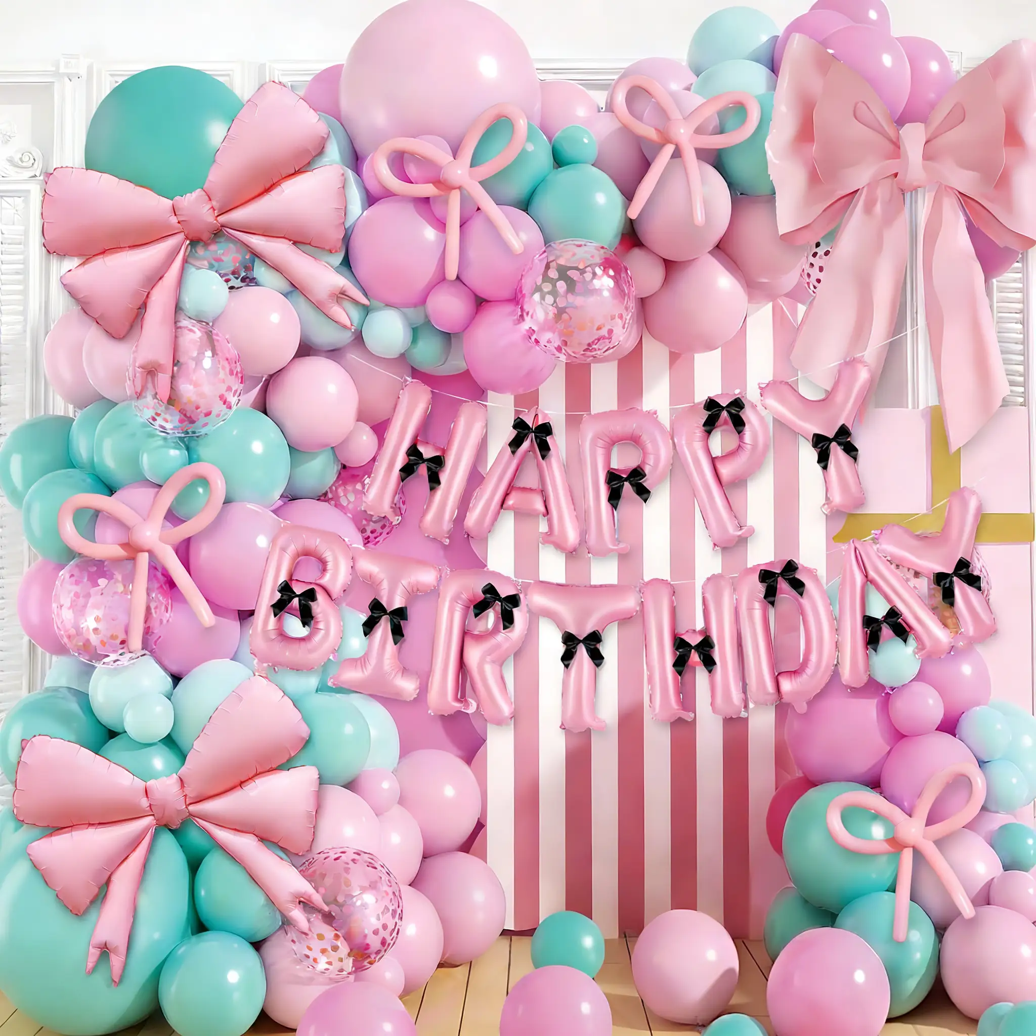 Als nieuw product wordt de ballonboog met strikthema ten zeerste aanbevolen. Het combineert op ingenieuze wijze de luchtigheid van ballonnen met de delicatesse van strikken, waardoor een productvorm ontstaat die zowel visueel aantrekkelijk is als rijk aan emotionele expressie. Het heeft drie kleuren: een babyblauwe ballonboogkit, een babyroze ballonboogkit en roze met tiffany blauwe boogkit.