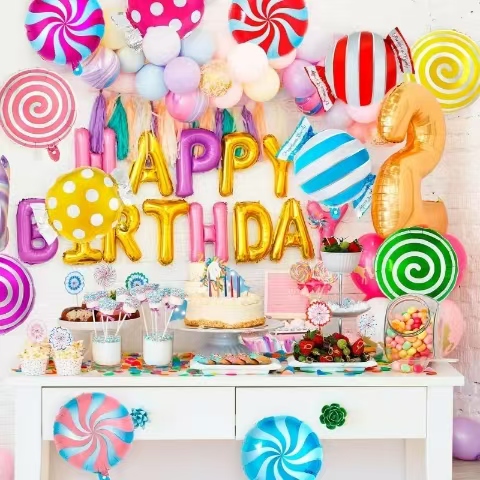De nieuwste snoepfolieballon van de NiuN® ballonfactor is een geweldige feestdecoratie. Deze folieballon heeft een grote verscheidenheid aan kleuren. Ronde snoepfolieballon heeft drie verschillende draadpatronen om uit te kiezen, waardoor het lijkt op een vergroot snoepje. Ster snoepfolieballon uniek, doorbreekt de traditionele ronde snoepvorm, meer unieke kleur. De klassieke snoepfolieballon in snoepvorm is geliefd bij consumenten, kleurrijk en een goede keuze voor elke feestgelegenheid.