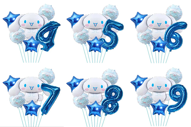 Cinnamoroll is een schattig puppy-stripfiguur, geboren op de witte wolken in de verre hemel. Het is de kenmerkende mascotte van de koffie- en kaneelwinkel en is geliefd bij kinderen over de hele wereld. Deze nummerset met Cinnamoroll-folieballonnen bevat een 3D Cinnamoroll-folieballon, een 18-inch Cinnamoroll-folieballon met print, een 18-inch sterfolieballon en een folieballon met cijfers. Het is zeer geschikt voor een kinderverjaardag of een ander vrolijk feestje. Je kunt dit pakket gebruiken. Al onze Cinnamoroll-folieballonnen en verjaardagsdecoraties zijn gemaakt van hoogwaardige materialen, die veilig en niet-giftig zijn. Het gebruik van natuurlijke latexproductie van ballonnen, hetzelfde niet-giftige. Elke ballon wordt uitvoerig getest en met de hand geplukt. Bijzonder dik, in tegenstelling tot gewone ballonnen is de kleur voller en barst niet, waardoor hij zeer geschikt is voor kinderen.