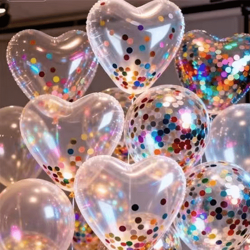 Op kinderverjaardagsfeestjes kan een confettiballon bedrukt met stripfiguren direct het enthousiasme van kinderen aanwakkeren en het middelpunt worden van het maken van foto's en ponskaarten, terwijl op Valentijnsdag een confettiballon bedrukt met liefde, Cupido-pijlen en andere patronen.