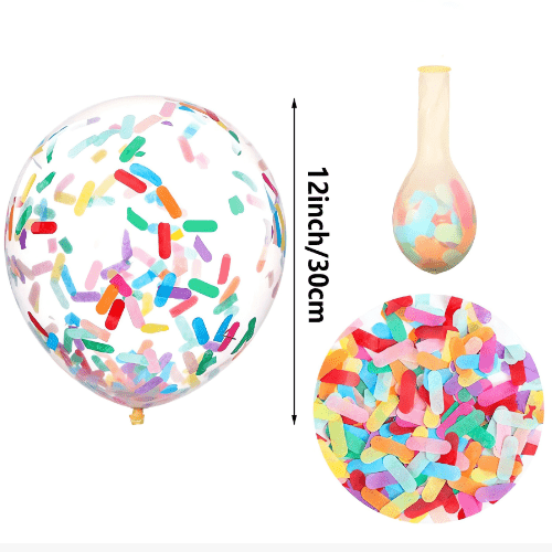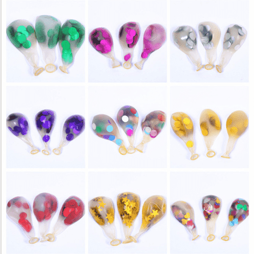 Confettiballonnen gebruiken meestal transparante latexballonnen van 12 inch. Elke ballon bevat 1 g confetti en elk pakket kan 100 stuks bevatten. Confettiballonnen van dit formaat worden vaak gebruikt en hebben betere resultaten, of het nu gaat om kleine ballonpakken of om ballonnenkranssets.