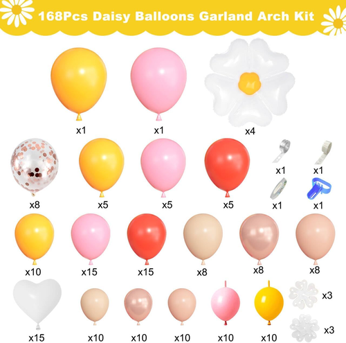 De ballonnen in de madeliefjeballonnenslingerboogset zijn ongeveer 150 stuks en kunnen de specifieke hoeveelheid aanpassen aan uw behoeften. Het maakt niet uit wat voor soort ballonnen je wilt toevoegen, wij geven je het beste.
