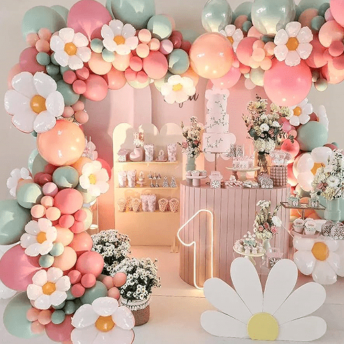 Verjaardagsfeestje: Daisy ballonslinger kan worden gebruikt als achtergronddecoratie voor verjaardagsfeestjes, geschikt voor kinder- of damesverjaardagsfeestjes, waardoor een vrolijke sfeer ontstaat.