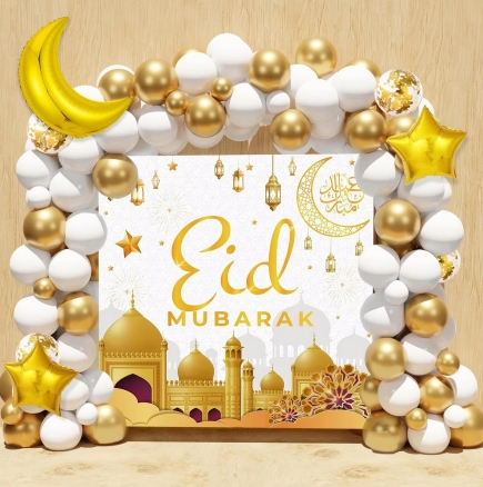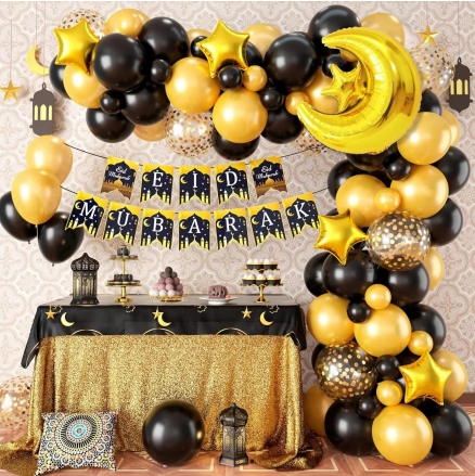 Niun® Brand Eid al-Fitr Balloon Garland-kits bevatten meestal een verscheidenheid aan items, zoals latex-ballonnen met EID-thema en folieballonnen van verschillende maten en kleuren, achtergrond, tafelkleden, visserslijnen, ballonketens, handmatige of elektrische luchtpompen, enz. behoeften van consumenten.