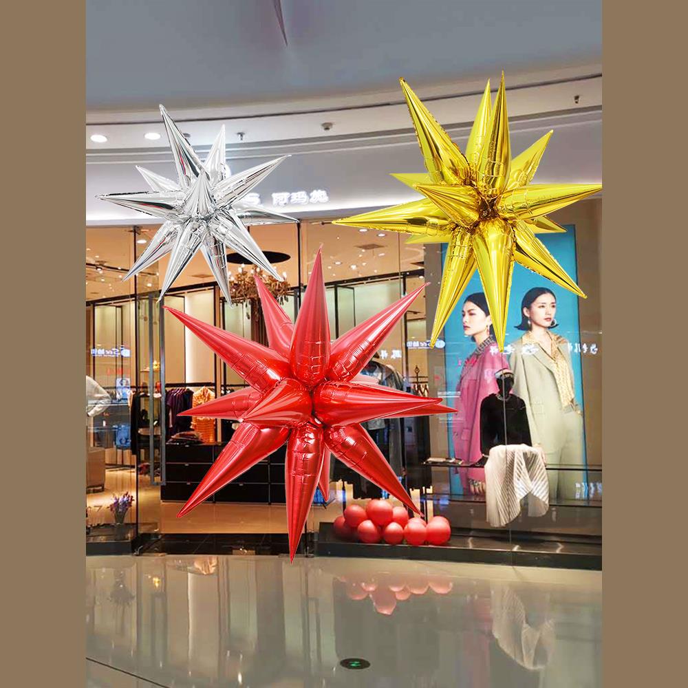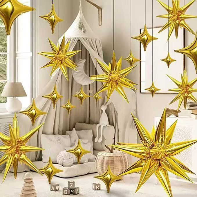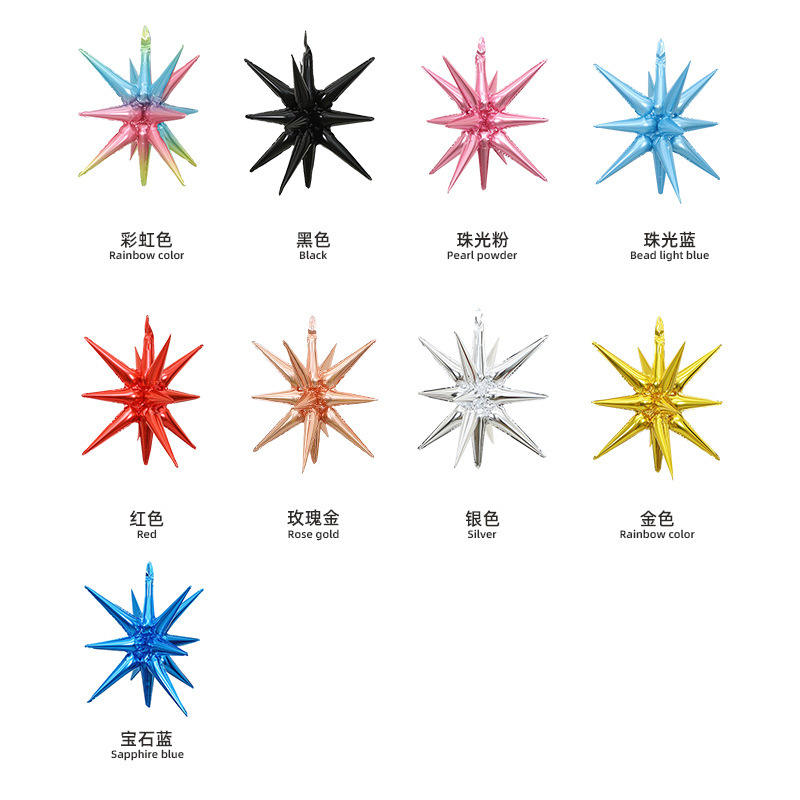 Eén stuk exploderende starfolieballonnen: verkrijgbaar in twee maten: 22 inch en 27 inch. De 22-inch maat is kleiner en geschikt voor slaapkamers en kantoren, waardoor het perfect is voor verjaardagdecoratie. De 27-inch maat is geschikter voor grotere ruimtes zoals bankethallen en ramen voor winkelcentra. Zelfs als het hoog is opgehangen, is het patroon duidelijk te zien.