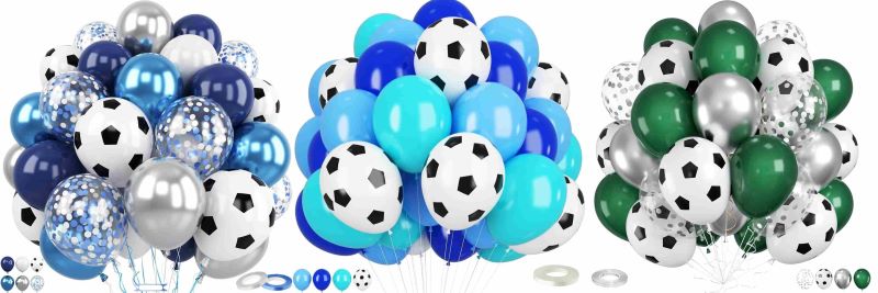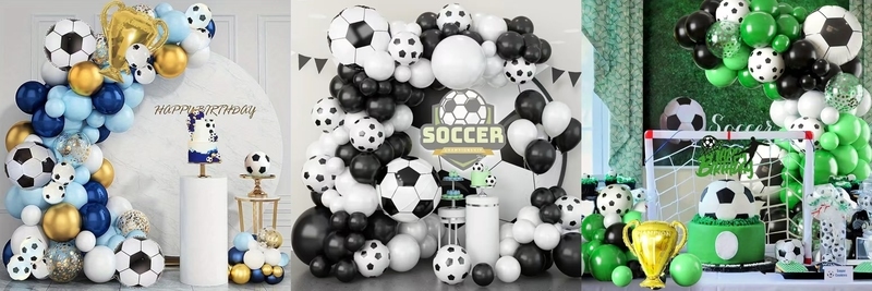 1. Wanneer u de ballonsets op maat maakt, kunt u gewoon groene of blauwe ballonnen gebruiken en er een paar plaatsenvoetbal bedrukte ballonnen, dan blijkt het een heel mooie set te zijn, zoals op de onderstaande foto: