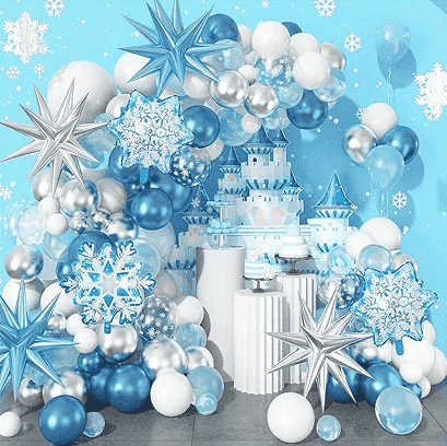 De Frozen Party Balloon-serie creëert een droomfeestsfeer en omvat vele soorten ballonproducten, voornamelijk latexballonnen, folieballonnen en bevroren ballonsetproducten. Delatex ballonis gemaakt van natuurlijk latexmateriaal. Latexballon heeft een hoge elasticiteit, kan de lucht doorspoelen en kan drijven met helium. De folieballon heeft verschillende vormen en trekt de aandacht van mensen. Het kan lange tijd een opblaasbare vorm behouden en is niet gemakkelijk te vervagen. De ballonnenslingersets bevatten ballon- en decoratieve elementen die in elkaar moeten worden gezet, waardoor het gemakkelijk is om snel een feestscène op te zetten.bevroren ballonondersteunt een persoonlijk ontwerp en specifieke patronen of tekst kunnen worden aangepast om aan unieke behoeften te voldoen. Deze producten zijn geïnspireerd op het bevroren thema, geschikt voor kinderverjaardagen, themafeesten of feestactiviteiten en versterken het algehele decoratie-effect.