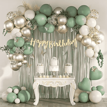 De basisstijl is een Happy Birthday-latexballon in dezelfde of complementaire kleur, metGelukkige verjaardagsbrief folieballonnenofaantal folieballonnen. Klassieke stijlen hebben Macaroon-poedergelballon, roze Happy Birthday-folieballon, zwarte latexballon, gouden nummerfolieballon. Latexballonnen kunnen in een ballonketting worden geregen en aan de muur of het plafond worden gehangen, met folieballonnen als visueel middelpunt en een kleine hoeveelheid lintversiering om snel een eenvoudige en gestructureerde feestsfeer te creëren.