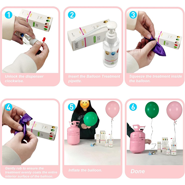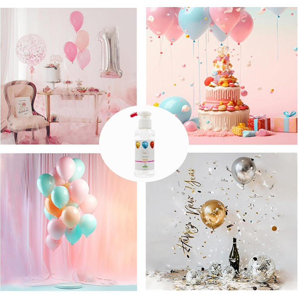 Deze heliumballonbeschermer gemaakt in China is verkrijgbaar in twee maten: 100 ml en 500 ml. Het bevat een pompdispenser voor eenvoudige toepassing. Een fles van 100 ml heliumballonbeschermer kan 65-70 10-inch of 12-inch latexballonnen vullen, waardoor hun vliegtijd wordt verlengd. Deze heliumballonbeschermervloeistof is ontworpen om de zwevende tijd van latex-ballonnen te verbeteren, zodat uw decoratie langer duurt en zijn visuele aantrekkingskracht in het hele evenement behoudt. Onze ultrahoge float-oplossingen bieden ongeëvenaarde hoge float-prestaties, waardoor latexballonnen dagenlang kunnen zweven. Deze helium -extender zorgt ervoor dat uw partijdecoratie van begin tot eind zal worden gebruikt, waardoor de noodzaak van frequente vervanging wordt verminderd.