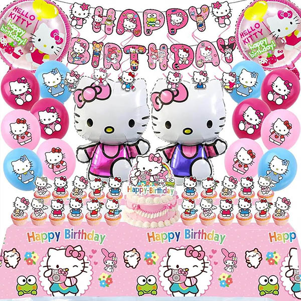 Deze latex ballonfeestset met hello kitty-thema bestaat uit een gelukkige verjaardagsbanner, taartdecoratie, latex ballon met hello kitty-thema en cupcake-topdecoratie. Alle decoraties in dit pakket zijn gemaakt van hoogwaardige materialen, met heldere kleuren en mooie patronen. Het materiaal is dik en niet gemakkelijk te beschadigen, wat ervoor kan zorgen dat de decoraties in de verpakking tijdens de viering van het evenement in goede staat blijven. Of het nu een feest, een verjaardagsfeestje of een leuk feestje is, deze feestset met cartoonthema is ideaal.