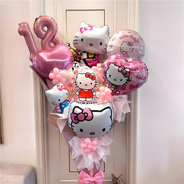 Hello Kitty is een schattig kattenstripfiguur dat de hele wereld heeft rondgereisd. De folieballon met Hello Kitty-thema, gemaakt in China, is gemaakt van hoogwaardig aluminiumfoliemateriaal, dat goede afdichtingsprestaties heeft en niet gemakkelijk lekt. Bij deze folieballon kun je kiezen uit meer dan 30 stijlen, waaronder ronde folieballonnen en driedimensionale folieballonnen met stripfiguren. De combinatie van twee folieballonnen met Hello Kitty-thema kan aan de behoeften van verschillende gelegenheden voldoen. Voor familiebijeenkomsten, verjaardagsfeestjes, bedrijfsevenementen of andere feestelijke gelegenheden kunnen deze folieballonnen bijvoorbeeld een vrolijke sfeer aan uw evenement toevoegen.