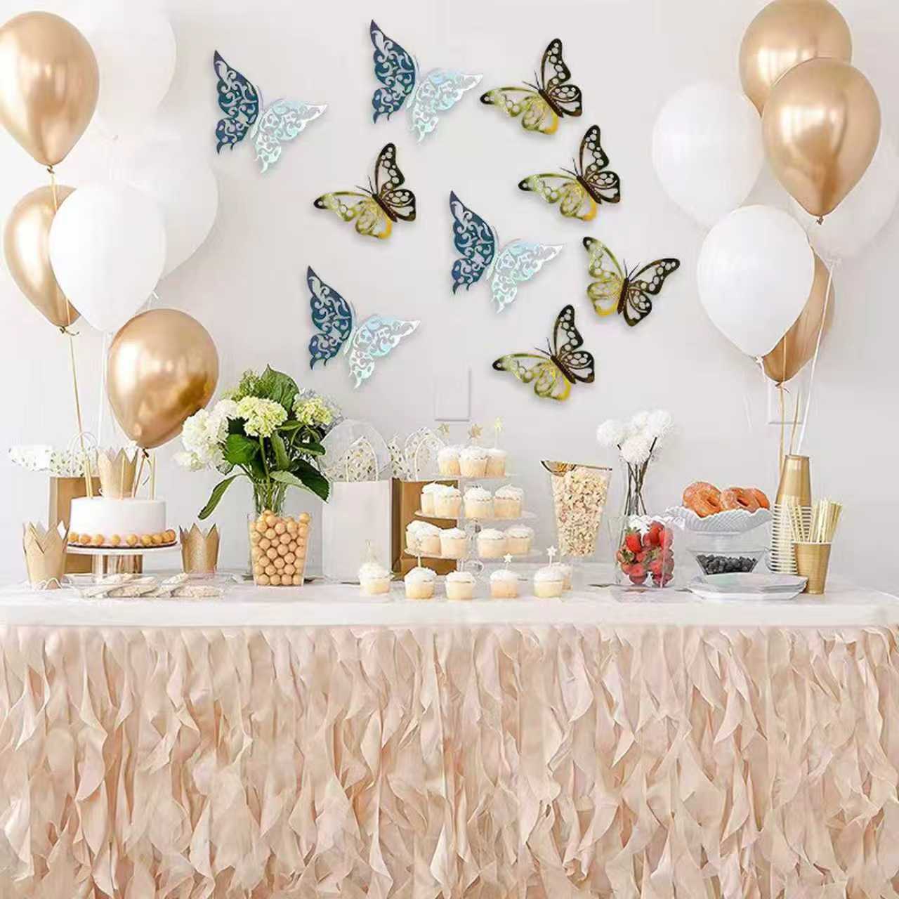 Op het moment dat de vraag naar lichtgewicht decoratie en gepersonaliseerde esthetiek toeneemt, is de holle vlindersticker het favoriete item geworden voor de indeling van huizen, feestplanning en decoratie van commerciële ruimten vanwege zijn drie kernvoordelen: milieubeschermingsmateriaal, meerlaags driedimensionaal ontwerp en aanpassing aan meerdere scènes. Het product neemt PET van voedingskwaliteit als basis en creëert gedifferentieerde stijlen met één laag, twee lagen en drie lagen door middel van een laserstansproces, waarbij de delicate textuur van vlindervleugels behouden blijft en het unieke effect van licht- en schaduwinteractie wordt gerealiseerd met behulp van de holle structuur. Of het nu op de muur wordt geplakt om een dynamische vlinderschaduw te creëren of wordt gecombineerd met ballonnen om een gevoel van zwevende flexibiliteit te creëren, het kan snel worden geïnstalleerd zonder professioneel gereedschap, waardoor eenvoudig een natuurlijke en romantische sfeer wordt geïnjecteerd in gezinsruimtes, verjaardagsfeestjes, trouwscènes en commerciële winkels, en wordt voldaan aan de uiteenlopende decoratiebehoeften van gewone consumenten tot decorontwerpers.