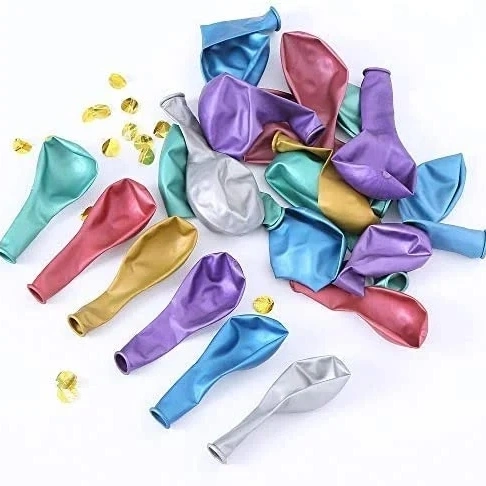 Metallic latex ballonnen worden veel gebruikt vanwege hun afwerking. Vergeleken met standaardballonnen heeft het oppervlak een meer reflecterend uiterlijk, waardoor ze geschikter zijn voor decoratie en weergave in de detailhandel.