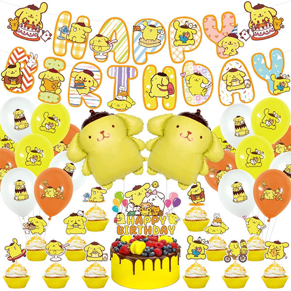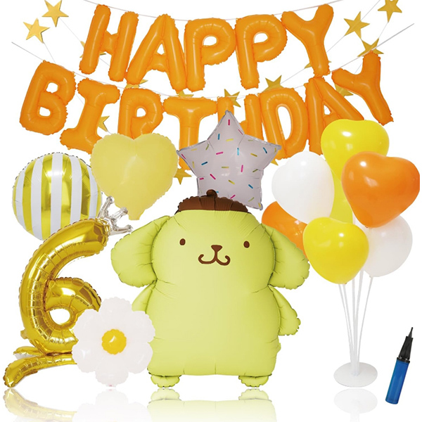De NiuN® Balloon Factory combineerde ook een feestset voor een met PomPomPurin bedrukte latexballon, bestaande uit een gelukkige verjaardagsbanner, een taarttopper, een met PomPomPurin bedrukte latexballon, een cupcaketopper en meer. De afbeeldingen op deze decoraties zijn kleurrijk en maken gebruik van milieuvriendelijke printtechnologie om effectief de aandacht te trekken en de visuele aantrekkingskracht van het feest te vergroten. Deze set decoraties is zo ontworpen dat ze eenvoudig in elkaar te zetten zijn, zonder dat je er veel tijd aan kwijt bent, en je kunt er plezier mee hebben met kinderen. Je kunt de verjaardagsbanner eenvoudig aan het plafond of de muur hangen, de banner is kleurrijk en de ballon is gemakkelijk op te blazen. De taartversieringen zijn prachtig gemaakt. Met deze verjaardagsfeestartikelen kunt u in een mum van tijd een prachtig verjaardagsfeest starten.