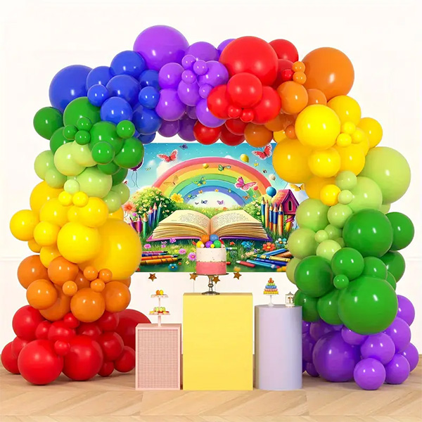 Deze regenboogballonslingerset is gemaakt van kleurrijke latex ballonnen. De levendige kleuren maken het perfect voor het decoreren van kinderverjaardagsfeestjes. Op maat gemaakte regenboogballonslingersets zijn verkrijgbaar in verschillende stijlen. U kunt uw aangepaste regenboogballonslingerset aanpassen en in de gewenste stijl samenstellen. Voel je vrij om je eigen unieke vorm te creëren en ermee te experimenteren om je volgende evenement tot een groot succes te maken.