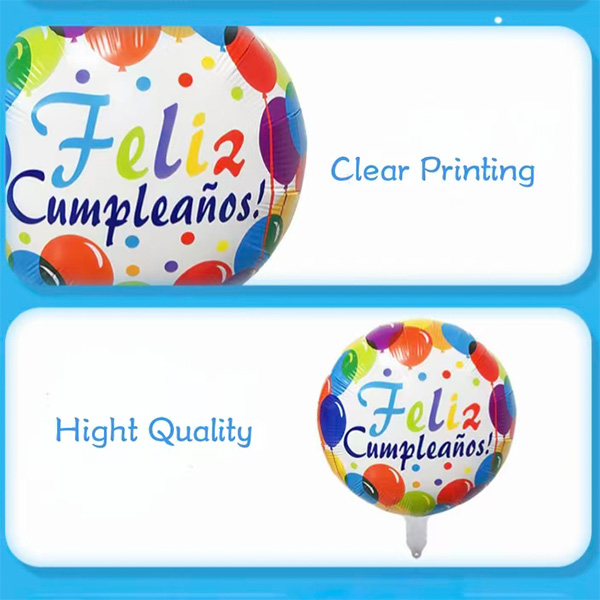 Ze omvatten verjaardagsballonnen in veel stijlen. Sommigen hebben "Happy Birthday" of "Feliz CumleAños" geschreven, met elementen zoals bloemen, cakes en kaarsen. Anderen zijn voor specifieke verjaardagen, zoals "eerste verjaardagsmeisje". Ze zijn goed voor verjaardagsfeestjes. Ze creëren een gelukkige en warme stemming voor verjaardagsvieringen.