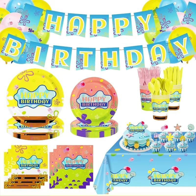 Op het gebied van kinderfeestartikelen is de SpongeBob-serviesset een leuke en nuttige keuze. Het heeft beroemde personages als SpongeBob en Patrick als hoofdontwerp. De set wordt geleverd met borden, papieren bekers, servetten en bestek. Op de borden staan SpongeBob afgebeeld met een grote glimlach en Patrick met een grappig gezicht. Het ontwerp voegt kwallen, zeewier en schelpen toe om een zeestijl te creëren. De kleuren zijn helder en rijk aan lagen. De papieren bekers en servetten volgen hetzelfde thema. De hele tafel ziet er vol oceaanplezier uit. Het servies maakt gebruik van veilige en ecologische materialen. Het heeft een leuke stijl en is ook handig. Het is geschikt voor verjaardagsfeestjes, thema-evenementen of familiemaaltijden. De set zorgt voor een vrolijk “Bikini Bottom-feest” voor kinderen en biedt ouders een gemakkelijke en hoogwaardige feestoptie.