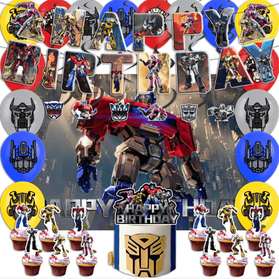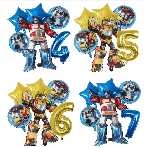 Klassieke combinatie: Transformers folieballon met kleurenlatexballonthemavlag, latexballon als basis, folieballon als visuele kern, vlag als themadecoratie, geschikt voor verjaardagsfeestjes, festivalvieringen van de basisindeling.